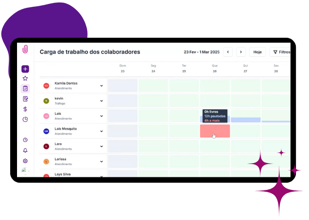Verifique a disponibilidade de cada membro da equipe antes de atribuir novas atividades, evitando sobrecargas e distribuindo as demandas de forma estratégica.