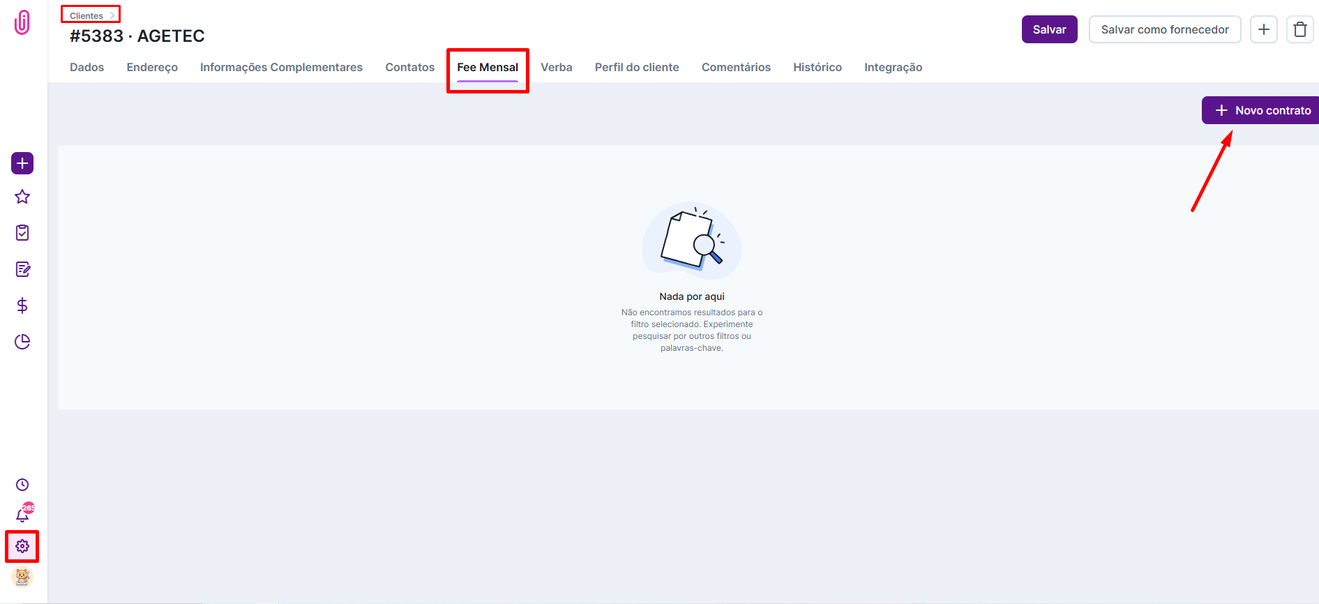 Sabemos que, grande parte das agências trabalham com contratos de fee mensal como forma de cobrir o custo de criação de peças para o cliente, por isso, é necessário cadastrá-lo da forma certa dentro do sistema.