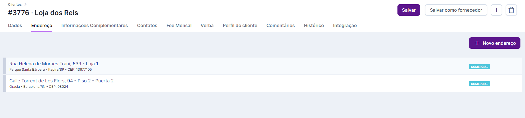 Aba “Endereço”