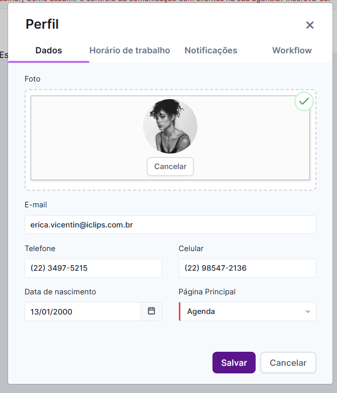 É possível inserir a foto dele para facilitar a identificação do mesmo na hora de determinar atividades, por exemplo!