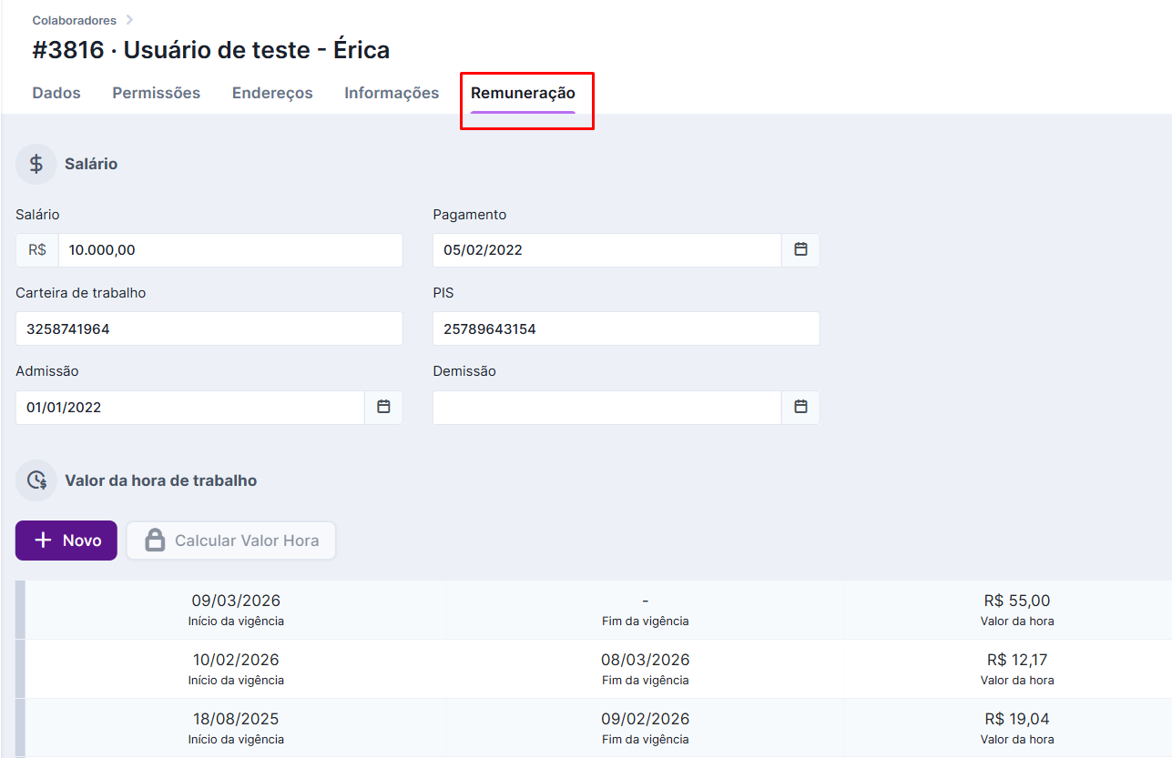 O campo de valor hora é extremamente importante, pois a partir dele sua agência pode gerar relatórios que levam em consideração o valor da hora x o número de horas trabalhadas do colaborador.