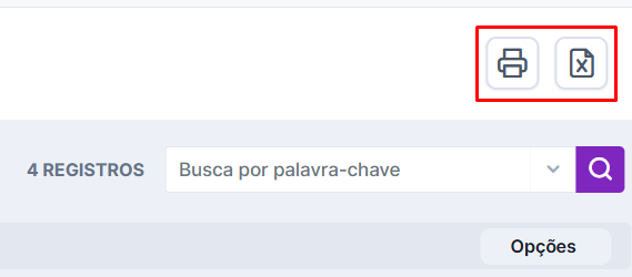 É possível imprimir o relatório em PDF ou gerar a versão em Excel. Para isso utilize os ícones:
