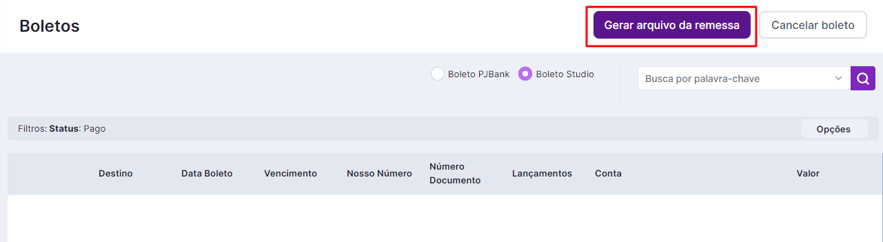 - Gerado: O boleto já foi gerado e pode ser enviado para o cliente;