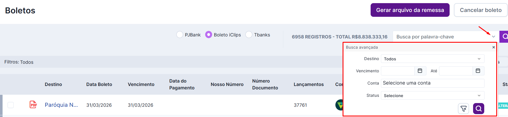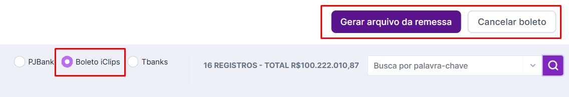 Feito isso, na parte superior da tela, você pode selecionar a visualização “Boletos iClips”.