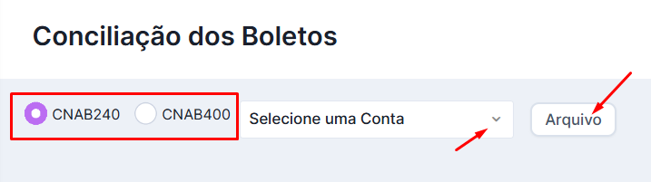 – Escolha o tipo do arquivo de remessa a ser inserido no sistema, CNAB240 ou CNAB400.