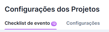 Para efetuar esse cadastro, o caminho é o seguinte: Configurações > Configurações dos projetos > Checklist para Eventos.